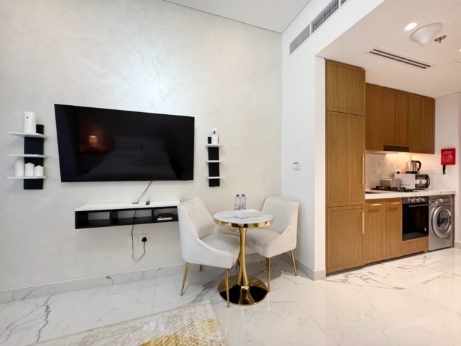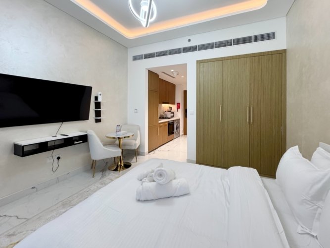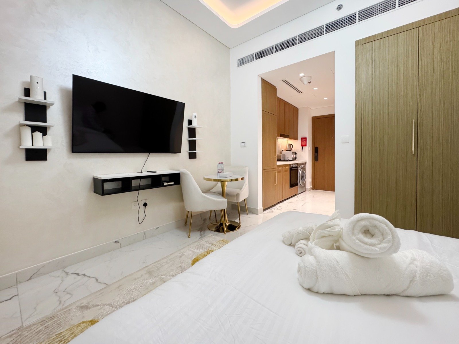 - Spacious Layout: Thoughtfully designed studio with ample space for relaxation and work.