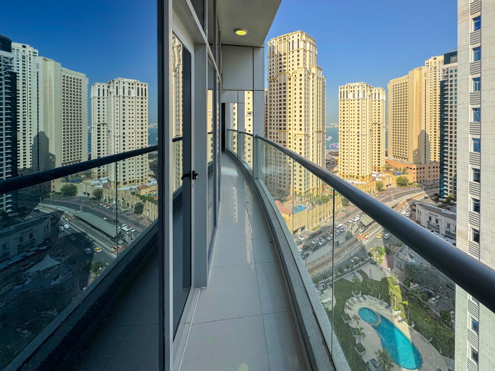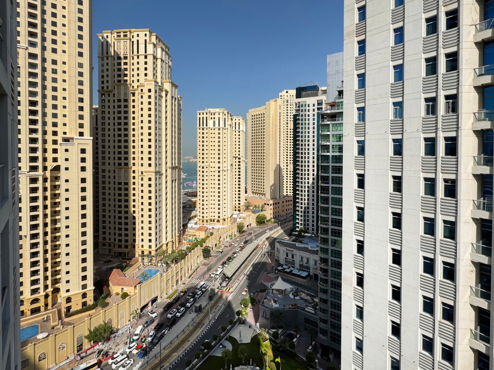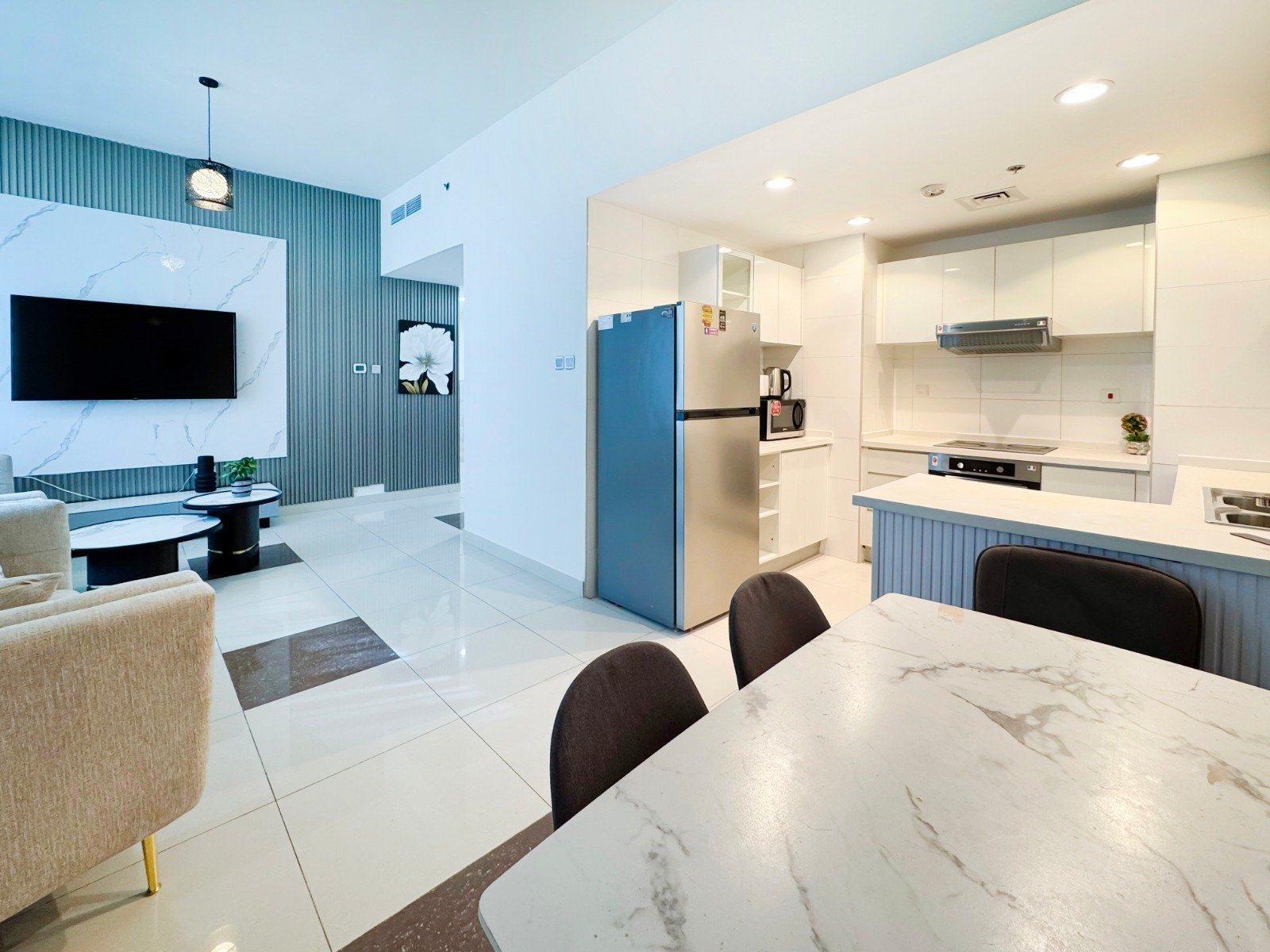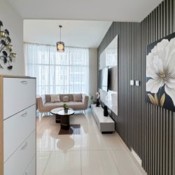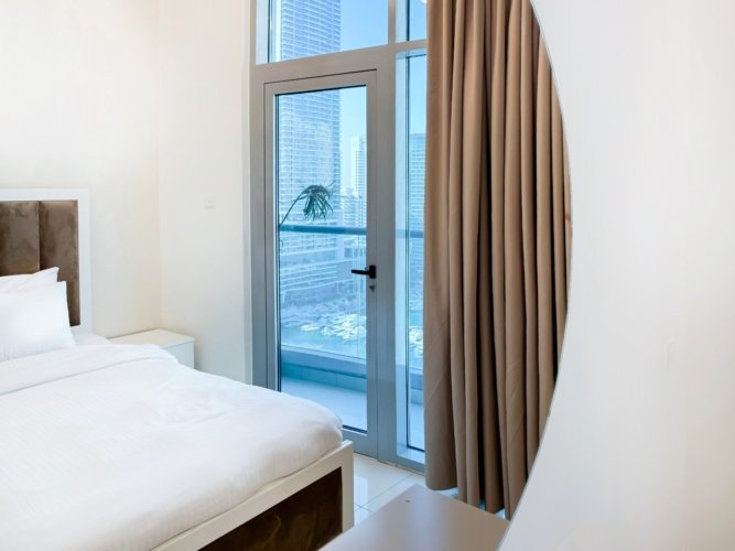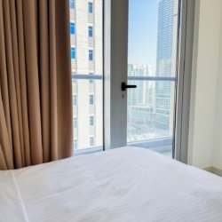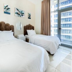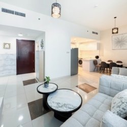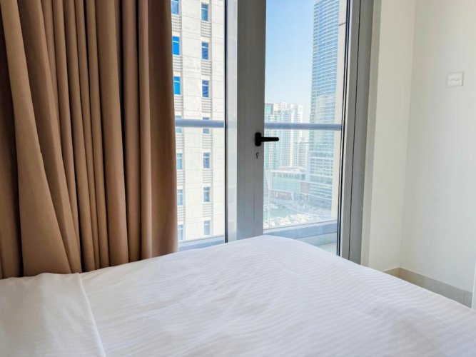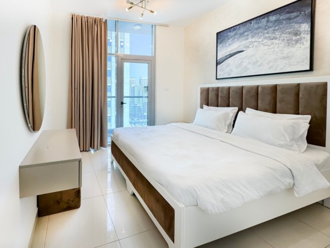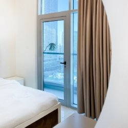 Dubai Marina luxury short-term apartment, JBR beach 5 minutes walking, tram station 2 minutes walking, metro 6 minutes walking and around supermarket, restaurants, and cafes.
